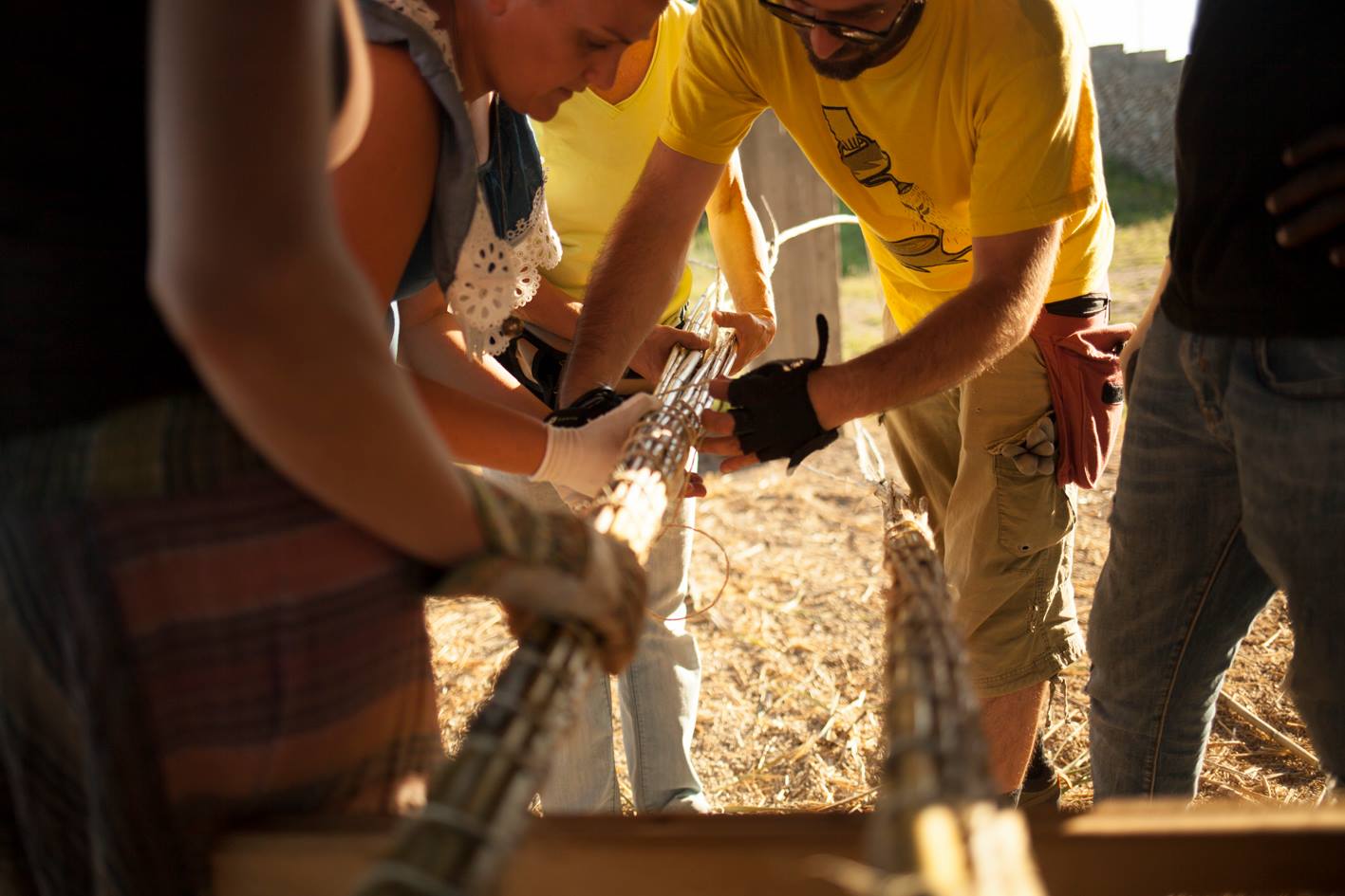 Le attività pratiche si sono concentrate su taglio, preparazione, pulizia e classificazione della canna, il metodo di costruzione a fasci, mediante l'ausilio di corde, per la realizzazione di arcate.Infine, attraverso la progettazione partecipata, sono state realizzate alcune strutture multifunzionali: tutori, frangivento, frangisole, strutture per la crescita di rampicanti e la costruzione delle strutture progettate attraverso la tecnica dell’intreccio.