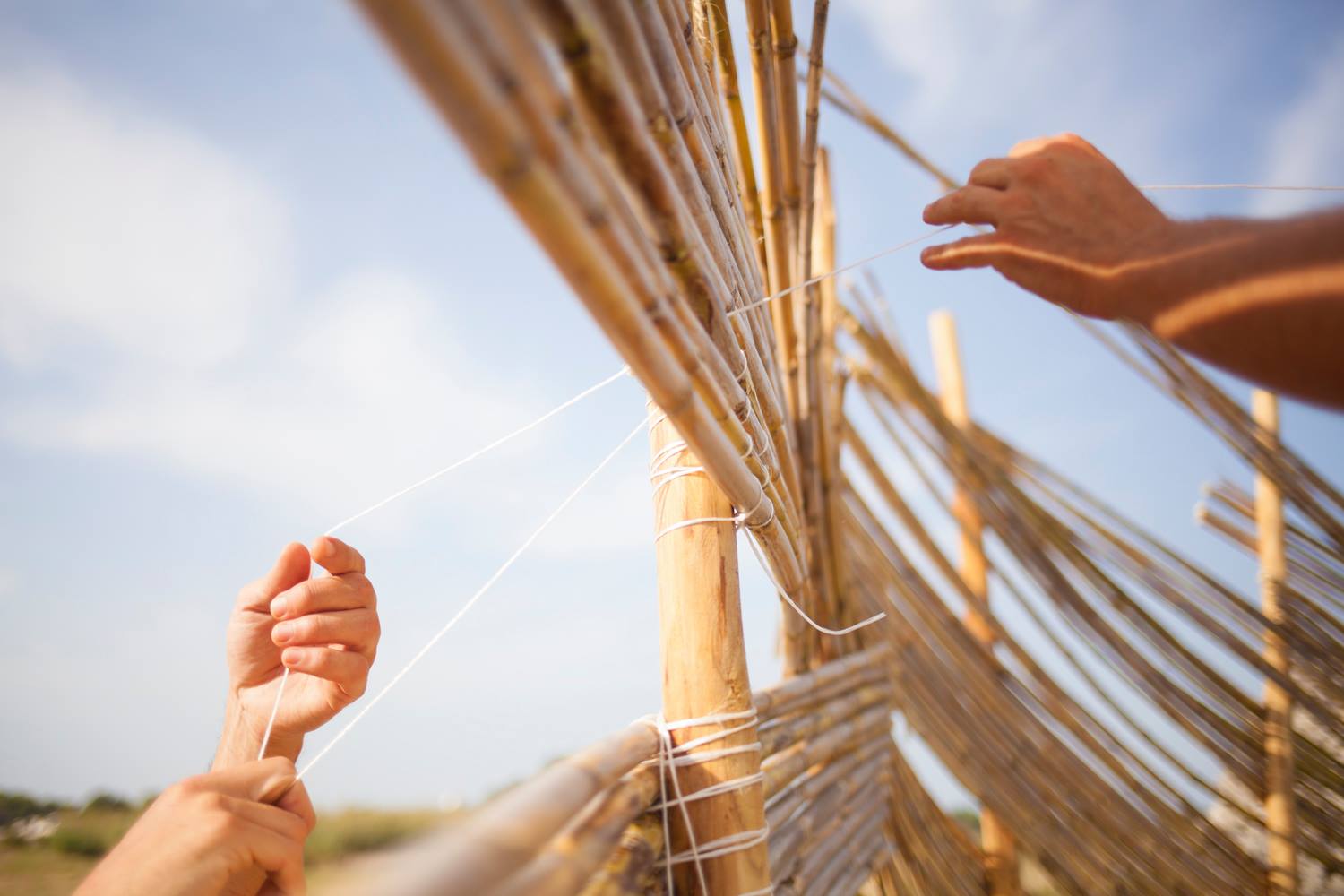 Workshop in collaboration with the architect Francesco Poli, expert in natural architecture (LAN - laboratory for natural architecture). We studied of the characteristics of the material, to recognize the age, proportions and degree of flexibility of Arundo Donax cane.